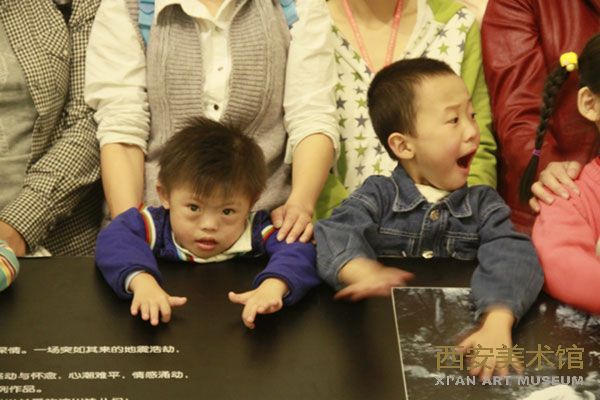 而做为为公共性文化平台的西安美术馆承载着为广大市民提供审美教育空间特在此展览期间开展公共教育活动,诚邀各大中小学学生前来参观学习。此次活动为莲湖区智障儿童机构和阳光家园障碍儿童参观展览。
