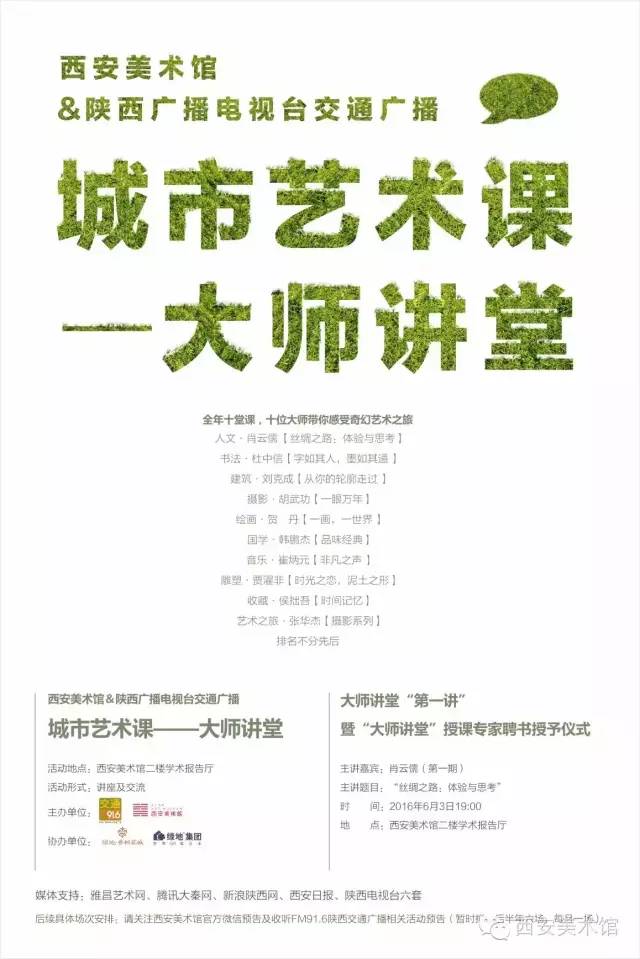 我们共同期待下一期“城市艺术课——大师讲堂”为大家带来更多精彩,后续具体场次安排请关注西安美术馆官方微信预告及收听FM91.6陕西交通广播相关活动预告(暂时拟定后半年六场,每月一场)。