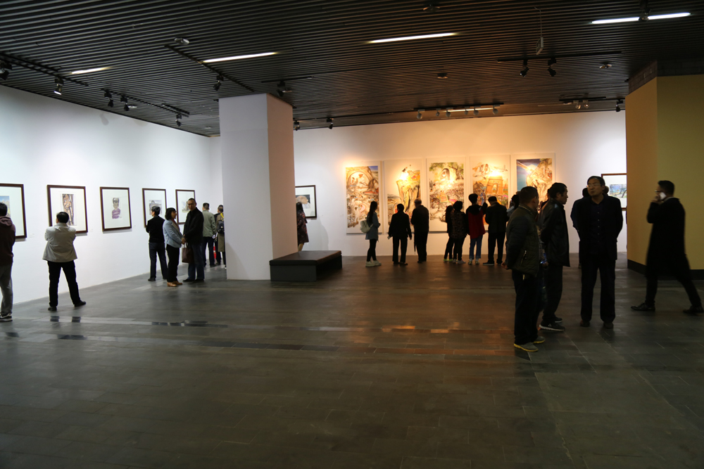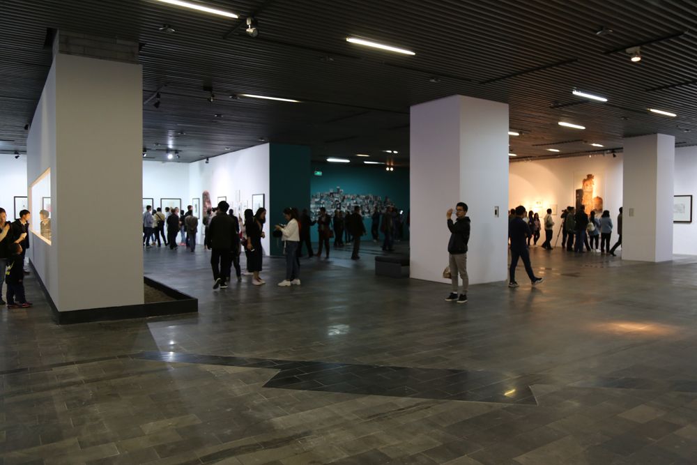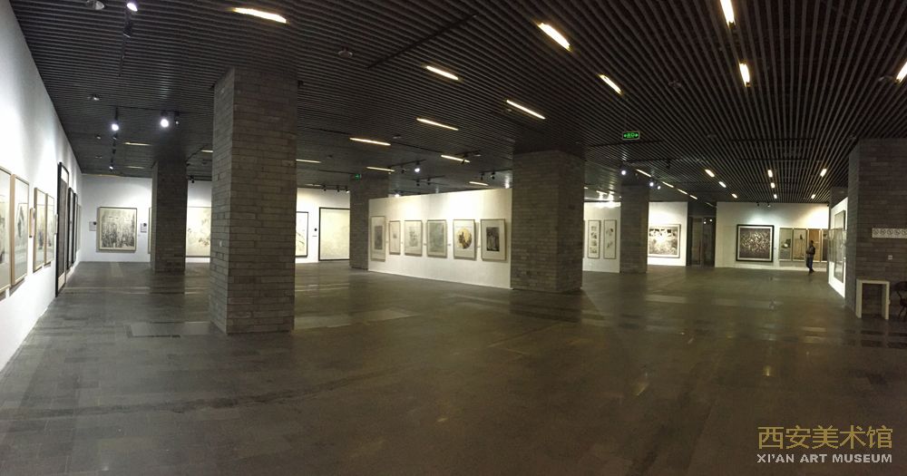 一号厅位于西安美术馆一楼电梯北侧,展厅内的立柱为展厅提供了更多可塑性,一号厅共640平方米,展线长108m米。