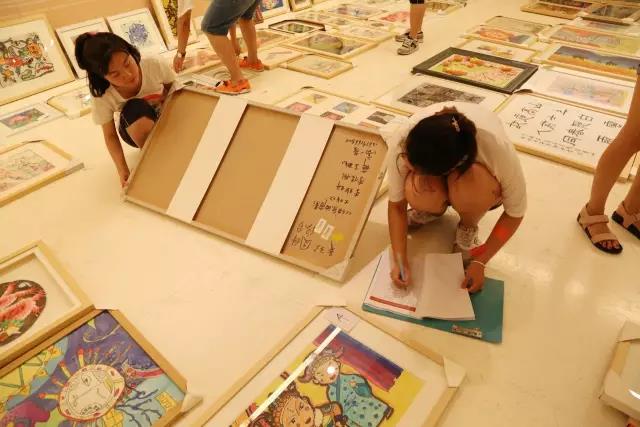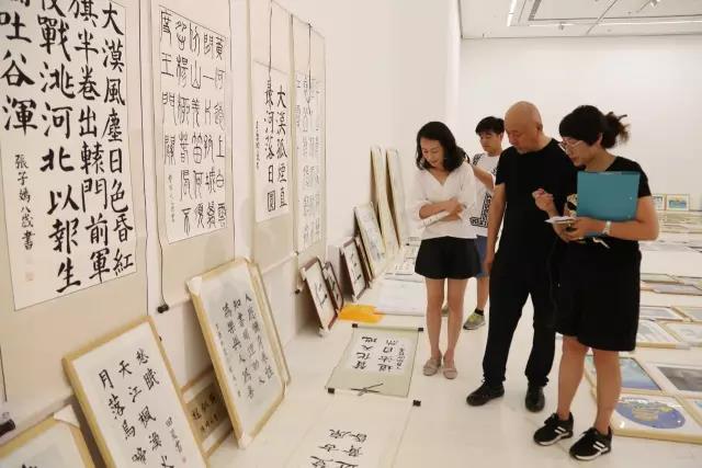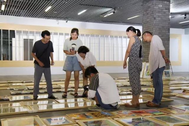 评审老师仔细观赏每幅作品并进行研究讨论。