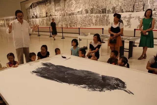 郭志刚老师说到今天的创作主题“梦境 —— 沉睡中的生命之鸟”,家长与小朋友要在鸟的周围进行绘画创作,