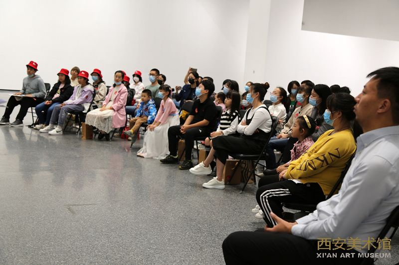2021年9月25日,“2021第三届西安少儿艺术双年展”参展小小艺术家在家长的陪同下与嘉宾们一起探讨少儿成长过程中的美术教育相关问题,现场参观了展览并进行了绘画创作。