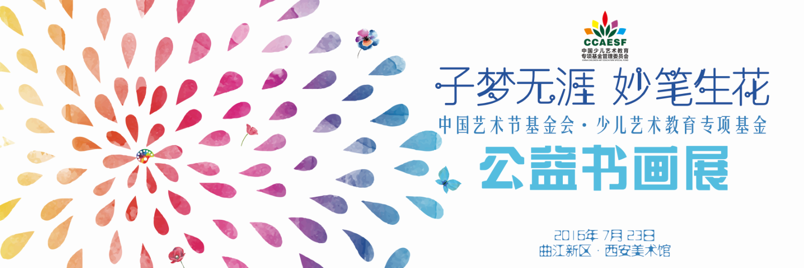 展览名称:“子梦无涯 妙笔生花”少儿公益书画展 展览时间:2016年7月23日——7月27日 展览地点:西安美术馆 一楼2号展厅 开幕时...